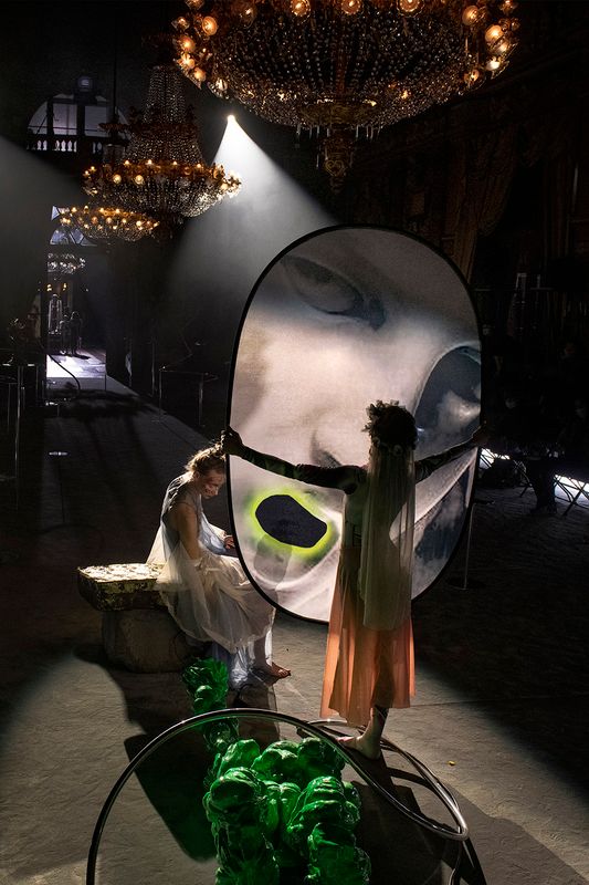 What does the early music of the future sound like? Is it performed by humans, robots, perhaps even aliens? How will they interpret the fragments and pieces of the past? And will opera and ballet be vague memories by then, or a last resort in the quest for lost emotions? These and other questions Meirhaeghe explores together with a hybrid cast of singers, instrumentalists, producers, dancers, performers and visual artists. They guide the audience through a new world in which time is suspended and all divisions between genre and gender have been dissolved. Digging into the history of music, they explore the raw power of voice and body. The theatre becomes a time machine, as nostalgic as it is revolutionary.