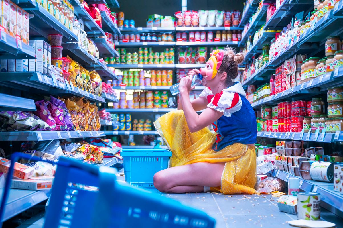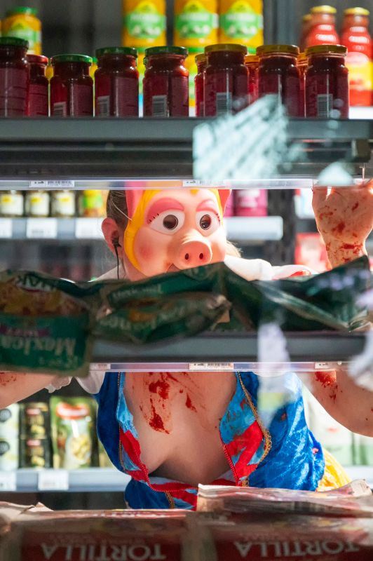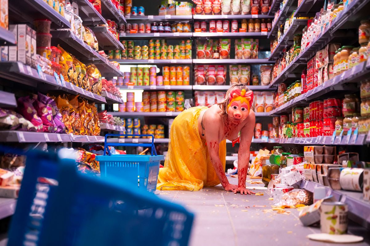 In his latest "living installation," Dries Verhoeven explores shoplifting. The late-capitalist human tries to survive in a system that has lost its shine, with no alternative in sight. We, the visitors, can walk around the installation or peek from behind the products on the shelves into the aisle and catch a glimpse of the desperate consumer. How exemplary are we when we think we are unobserved? Since the introduction of self-checkout machines, shoplifting has increased. Dries Verhoeven saw it as a reason for investigation. He spoke with more and less affluent people who occasionally "forget" to pay, with thieves in detention, and those who consider theft as a form of resistance.