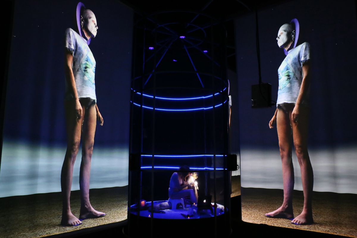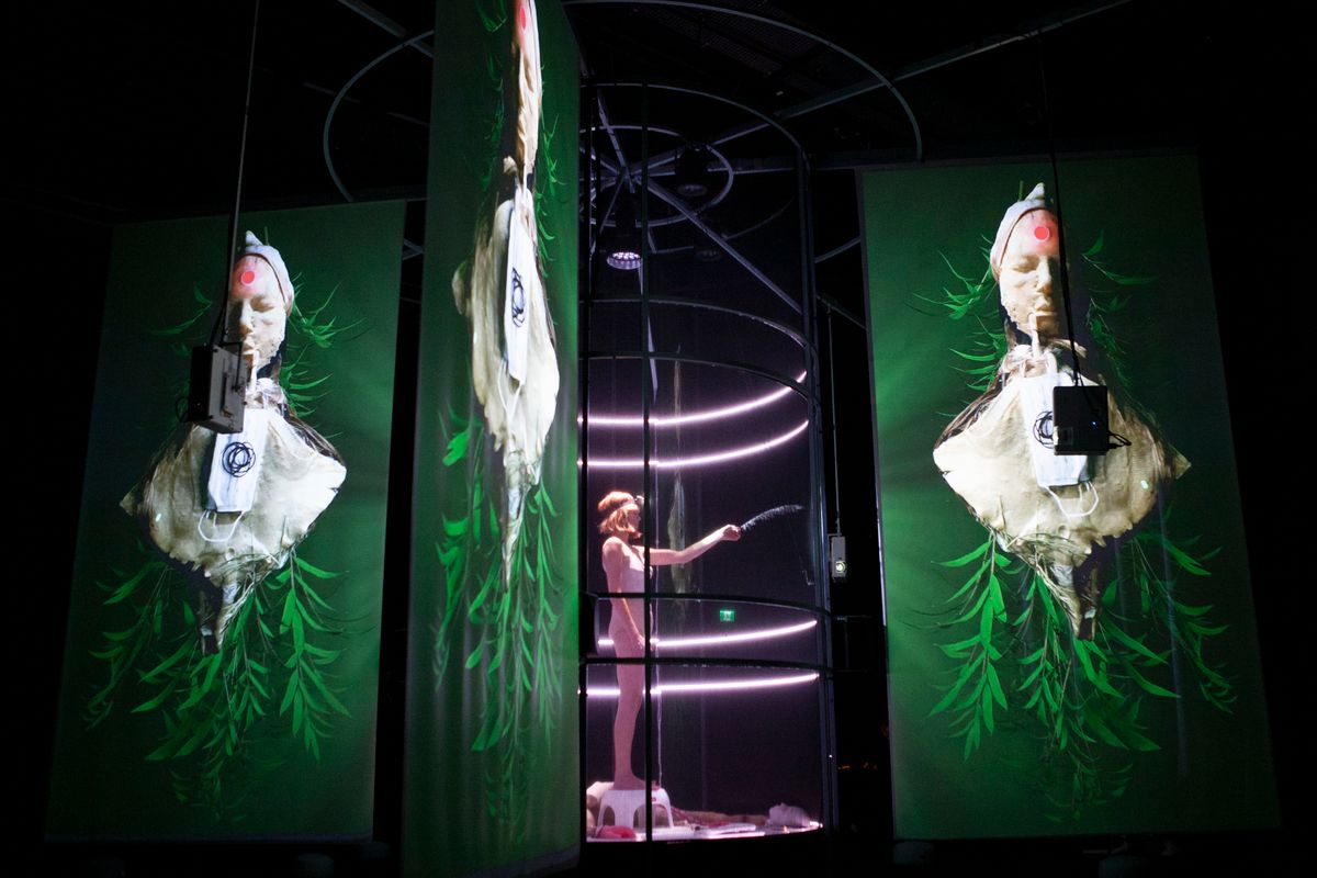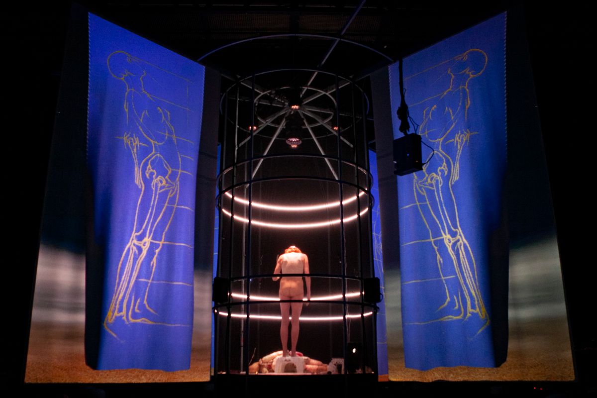 In the new production ANTIBODIES, performance duo Boogaerdt/VanderSchoot honors feminine anatomy as the source of creation during a ritual gathering. In a technologically mediated séance, we encounter a woman moving in a closed capsule between reality, fiction, dream and hallucination. On the basis of her online data, she descends into twilight zones where she meets variants of herself.