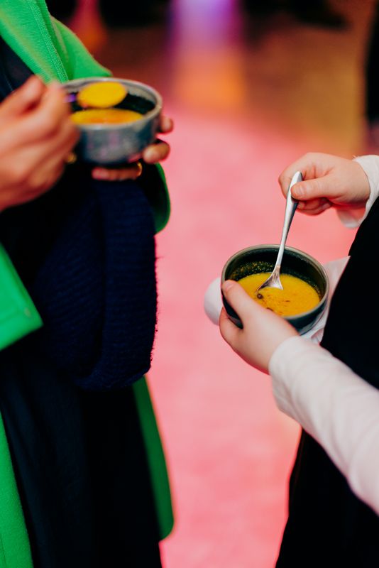 Het doel van het programma is dat je trek krijgt in de voorstelling, maar zeker niet op een lege maag! Daarom starten we met een drankje en krijg je zowel bij binnenkomst als tijdens het programma fingerfood geserveerd, uiteraard geïnspireerd op de voorstelling Sisterhood.