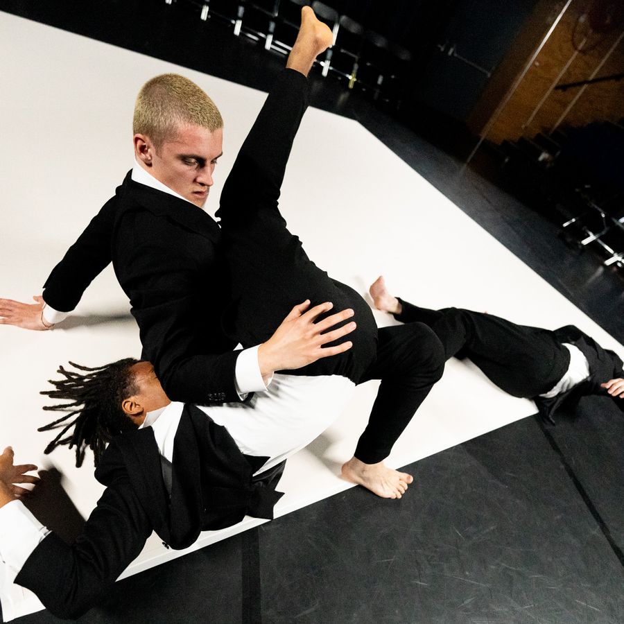 In AWOL, three dancers explore what it means to live in a society of strict rules and fixed norms. Three men, trapped in a system. Military discipline, tight suits, camaraderie and competition.