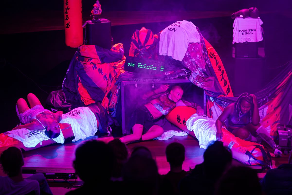 Following her critically acclaimed performance Try Not to Know What You Know, Merel delves deeper into the complex relationship between pleasure, violence, exhaustion, and resilience. Together with performers Matilde Tommasini (formerly Milou van Duijnhoven) and Princess Isatu Hassan Bangura, she presents another intense performance, filled with her signature energy. The trio challenges existing capitalist and patriarchal systems, exploring a world of intensive physical effort and soft connection. As raw blows transform into tender embraces, the performers turn the stage into a suggestive landscape of possibilities.