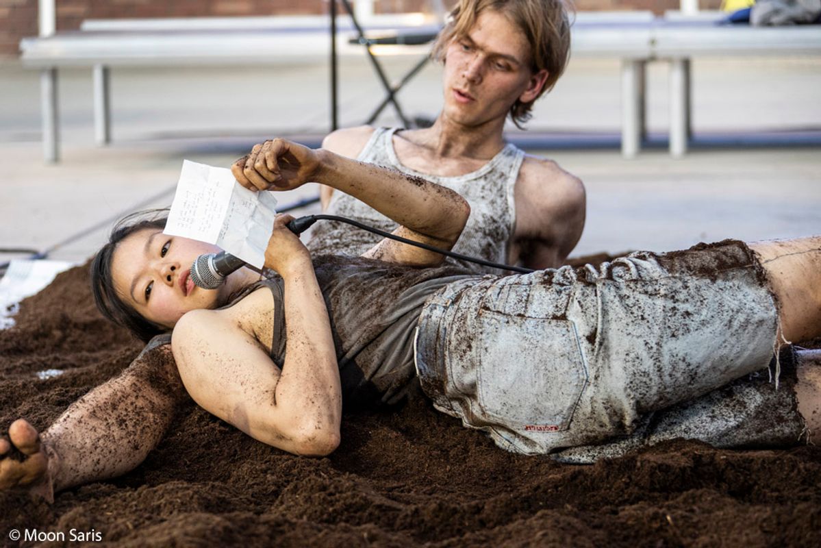 ashleyho+domeniknaue is een verzameling van lichamen en harten. Wij maken performances die verschillende kunstvormen samenbrengen, zoals dans, poëzie, grafisch ontwerp, geluid en scenografie. Voor ons is performance een manier om de wereld anders te benaderen—een intiem, politiek proces waarin we veranderen en veranderd worden. Niet zozeer een vast thema, maar eerder een manier van samenzijn met de wereld. We zoeken speels en kwetsbaar naar manieren om om te gaan met de uitdagingen van deze tijd. In ons werk spelen sporen, objecten, aanraking, afwezigheid en aandacht een grote rol. Onze samenwerking begon vanuit vriendschap in 2019. In 2022 studeerden we af aan de Dancer/Maker-opleiding van ArtEZ University of the Arts. Nu werken we vanuit Amsterdam, actief in Nederland, België en Singapore. Van 2024-2026 worden we ondersteund door de Nieuwe Makers Regeling (FPK), in samenwerking met Dansateliers en SPRING Festival. We zijn ook associate artists bij Dance Nucleus (Singapore).