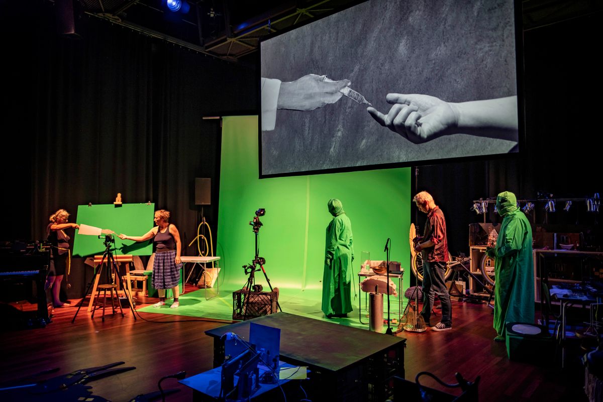 concept Arlène Hoornweg, Pauline Kalker makers en spelers Arlène Hoornweg, Pauline Kalker, Herman Helle, Gabby Bakker, Heleen Wiemer componist en live muziek Reinier van Houdt decorbouwassistentie Marsha Agerbeek, Juliet Campfens, Heleen Wiemer techniek Joost ten Hagen, Joris van Oosterhout, Pablo Strörmann met dank aan Nineties Productions, Robbert So, Christaan Verbeek