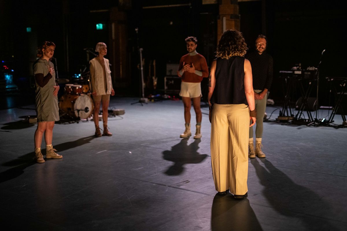 concept Club Gewalt, De Dansers performance Amir Vahidi, Blazej Jasinski, Josephine van Rheenen, Gerty Van de Perre, Guy Corneille, Liam McCall, Loulou Hameleers, Robbert Klein, Ruben van Asselt, Sanna Elon Vrij, Suzanne Kipping eindregie Khadija El Kharraz Alami dramaturgie Anne van de Wetering, lichtontwerp Loes Schakenbos techniek en licht Noor Thijssen geluidstechniek Sam Jones.