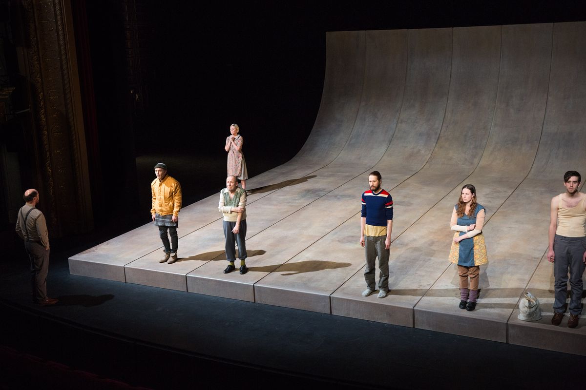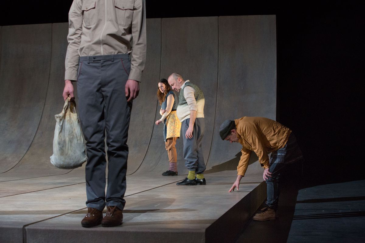 " Uit de voorstelling spreekt een diep denken over afkomst en ervan afgesneden zijn, over de gruwelijke overlevingsdrang om toch ergens thuis te komen. Die suggestieve diepgang ligt voorral aan de sterk visuele regie van de Duitse gastregisseur Philipp Becker. Hij plaatst zijn acteurs als losse atomen op een leeg hellend vlak, als blanco identiteiten die schuiven tussen hun rollen zoals ze over de scène schuifelen. (…) het slotbeeld is, na alle woorden, nog het sterkst. Vijf mensen gehurkt, als konijnen in de berm. Ze wachten. Zij hebben de tijd. Ineens lijkt de muur achter hen een golf te worden." - De Standaard