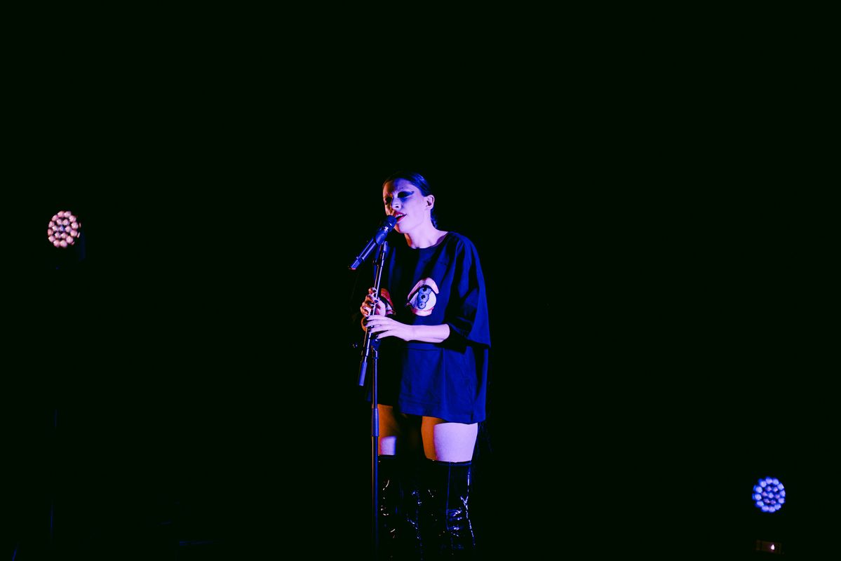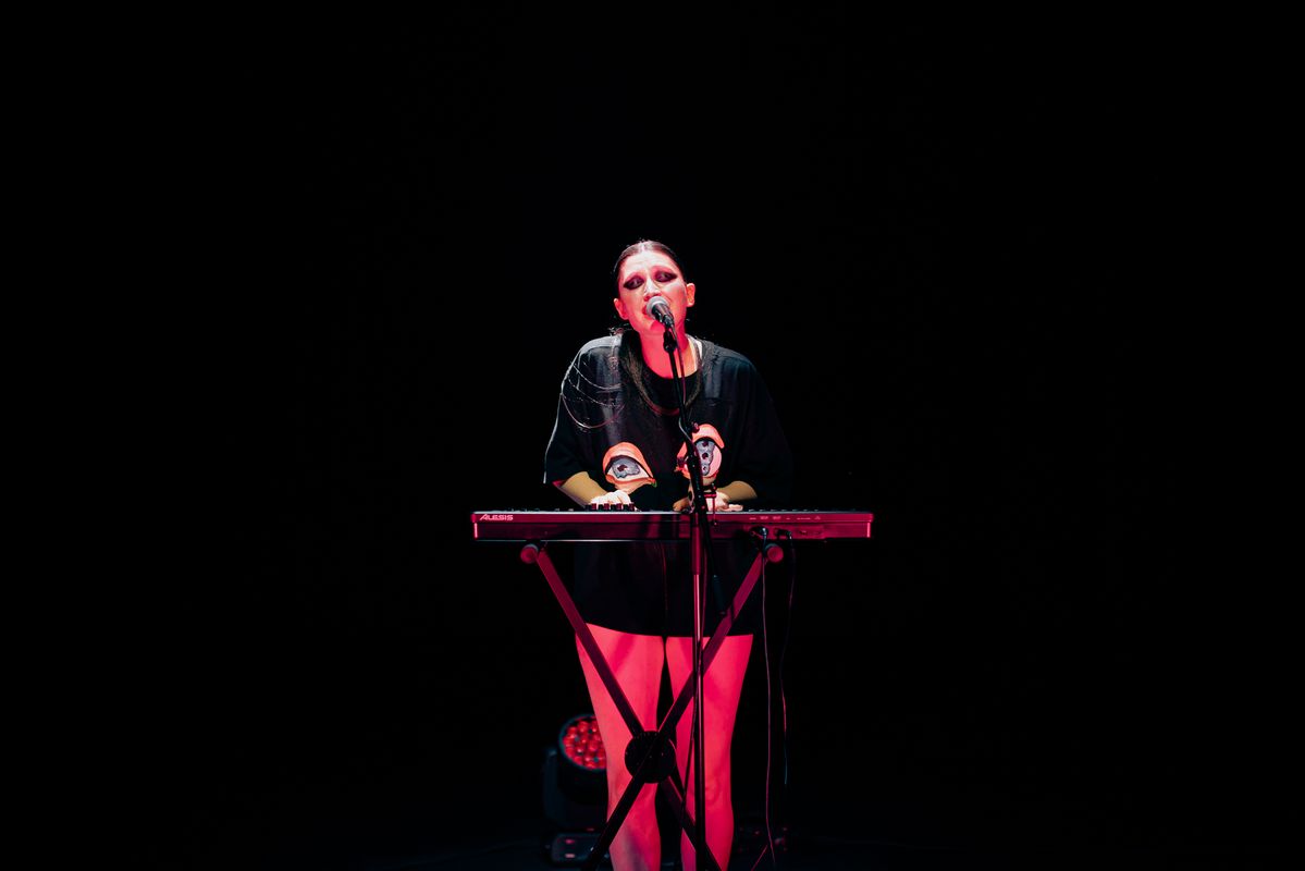 Vocality is at the centre of Hélène’s autonomous work. She uses voice and vocal textures as a political and performative weapon to take in sonic space as a feminist. Hélène explores how her lead vocal — a high pitched clear timbre —can disrupt the fantasy of patriarchal heteronormativity. Her compositions always aim to be both genre-bending and gender-bending. Her work is heavily inspired by mythological creatures, meme-culture, queer icons and and singing divas throughout history. Usually, one project materializes in multiple art works such as a performance, an EP, a book and visual (textile) art works.