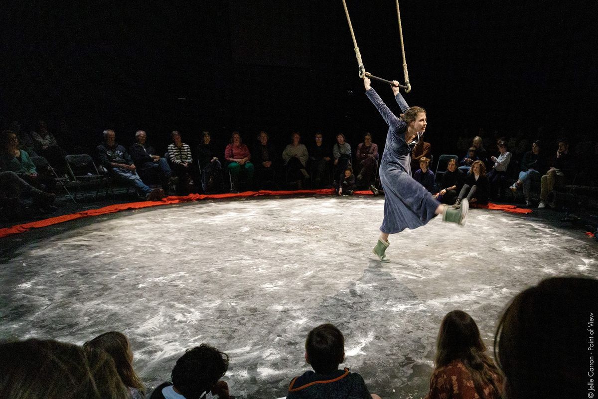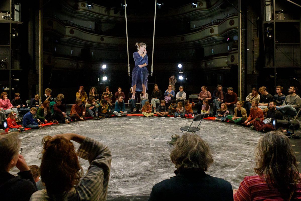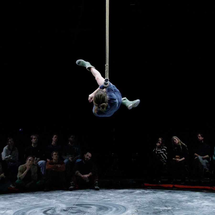 Hanna speelt in haar trapeze met het contrast tussen de vrijheid van in de lucht zijn en het gevoel van vaste voet op de grond.