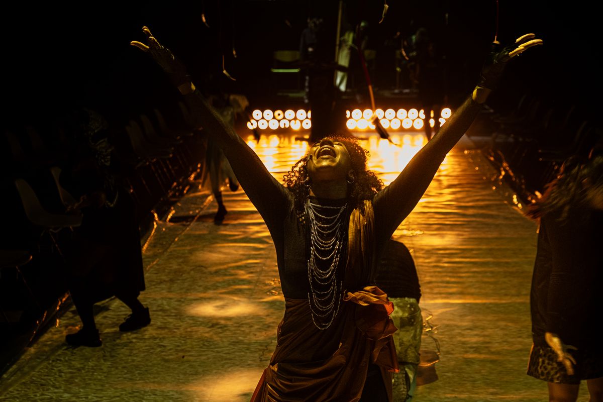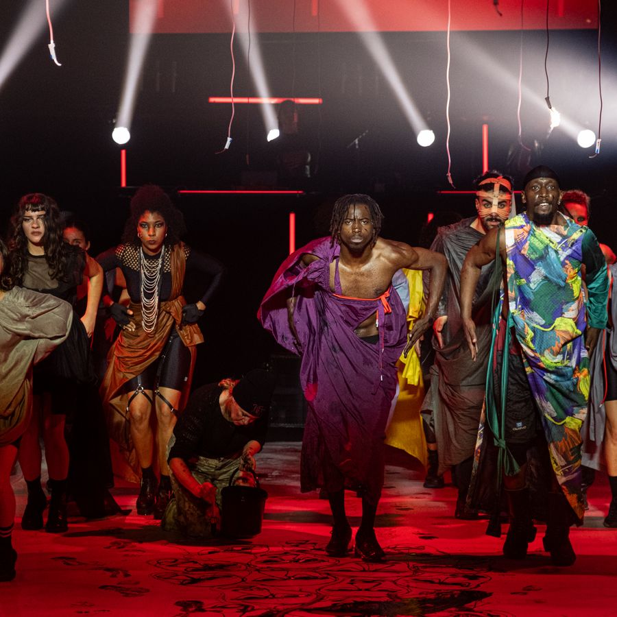 regie Junior Mthombeni, Michael de Cock dramaturgie Gerardo Salinas muzikale dramaturgie Tom Swaak performers Vianney Adriaens, Kirezi Kalisa, Dora Almeleh, Moha Amazian, Pierre Anganda, Abel Baeck, Mirko Banovic, Marios Bellas, Justine Bourgeus, Ibrahima Cissokho, Gala Dragot, Raphaële Green, Amina Iddrisu, Yannick Tonic Mendi Jacobs, Tom Kestens, Alix Konadu, Aymará Parola, Emma Posman, Zach Swagga, Bahar Temix, Jutta Troch scenografie Stef Stessel lichtontwerp Dimi Stuyven kostuumontwerp Marie Szersnovicz video-ontwerp Francesc Isern schilderij Elke Gijsemans bewegingsregie Lisi Estaras productieleiding Catherine Vervaecke, Robin Hectors toneelmeester Caroline Wagner geluid Bram Moriau, Kasper Dumon licht Dimi Stuyven video Thibaud Decoene boventiteling Inge Floré vertalingen Trevor Perri, Anne Vanderschueren, Alex Stockman kostuumatelier Theatre de Liege, CiLAB productie KVS coproductie Opera Ballet Vlaanderen, De Munt / La Monnaie, Theatre de Liege, TNC, Compagnie du Theatre National Daniel Sorano, Madame Fortuna, Perpodium met speciale dank aan Theater Arsenaal met steun van The Belgian Federal Gorvernment via Cronos Invest, The European Union (Horizon 2022 Programma)