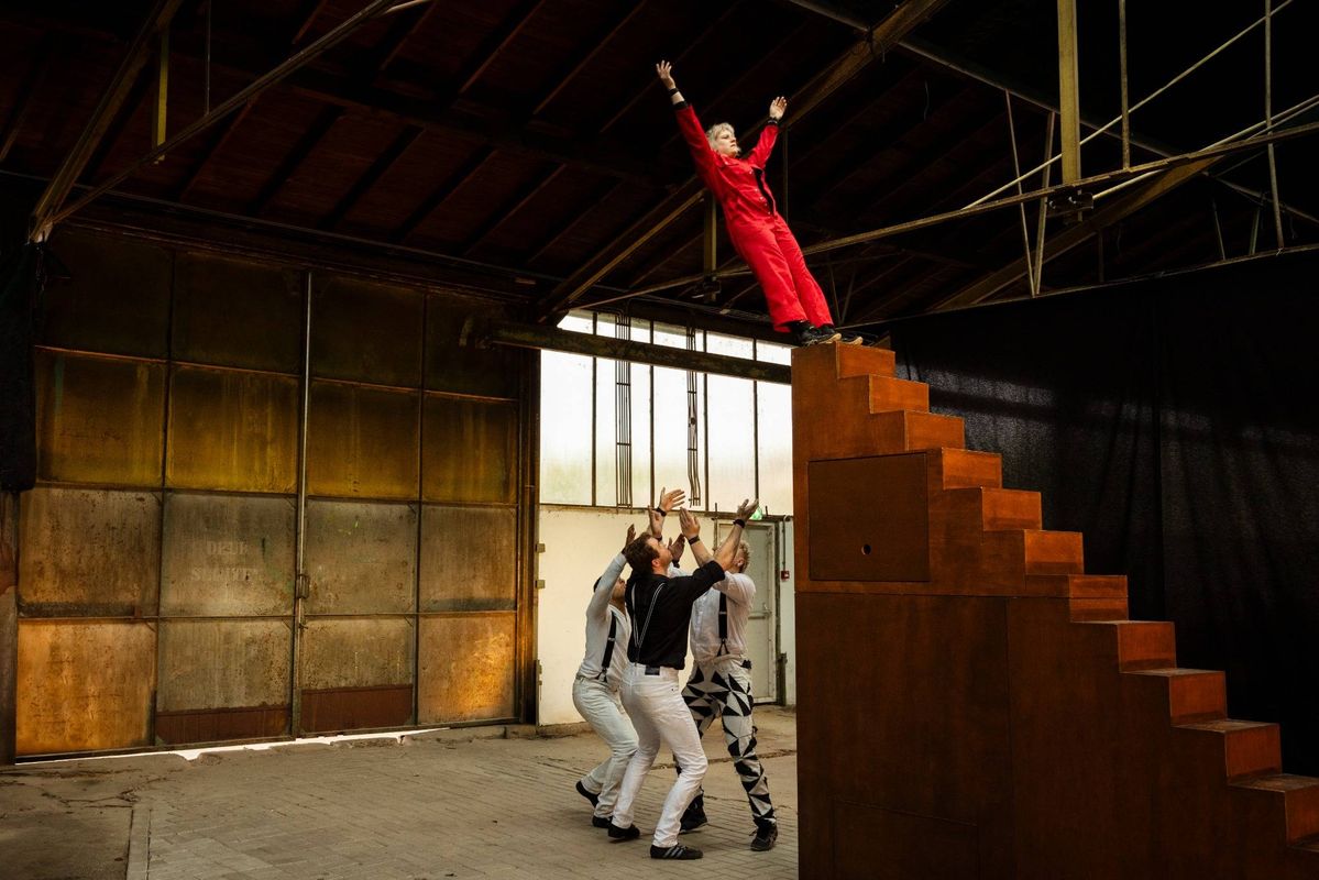 concept/regie Maartje Bonarius, Harm van der Laan compositie en elektrische gitaar Kalle Kalima acrobaten Alfonso Escribano, Christina Lancione, Melinda Meijs lichtontwerp Maarten Verheggen dramaturgie Luc van Esch kostuum Martijn J Kramp, Anouk van Kampen Wieling productie Nikki Kracht, Susanna Paavola scènefoto’s Mirella Bea
