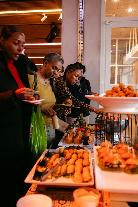 Daarnaast is er ruimte voor ontmoeting en ontspanning. Kom langs onze market voor handgemaakte accessoires, boeken en andere producten van vrouwelijke en femme ondernemers. In de selfcare corner kan je terecht voor manicures van The Nailboy, gezichtsbehandelingen door Sharon en ontspannen stoelmassages. Een plek om te landen en verzorgd te worden.