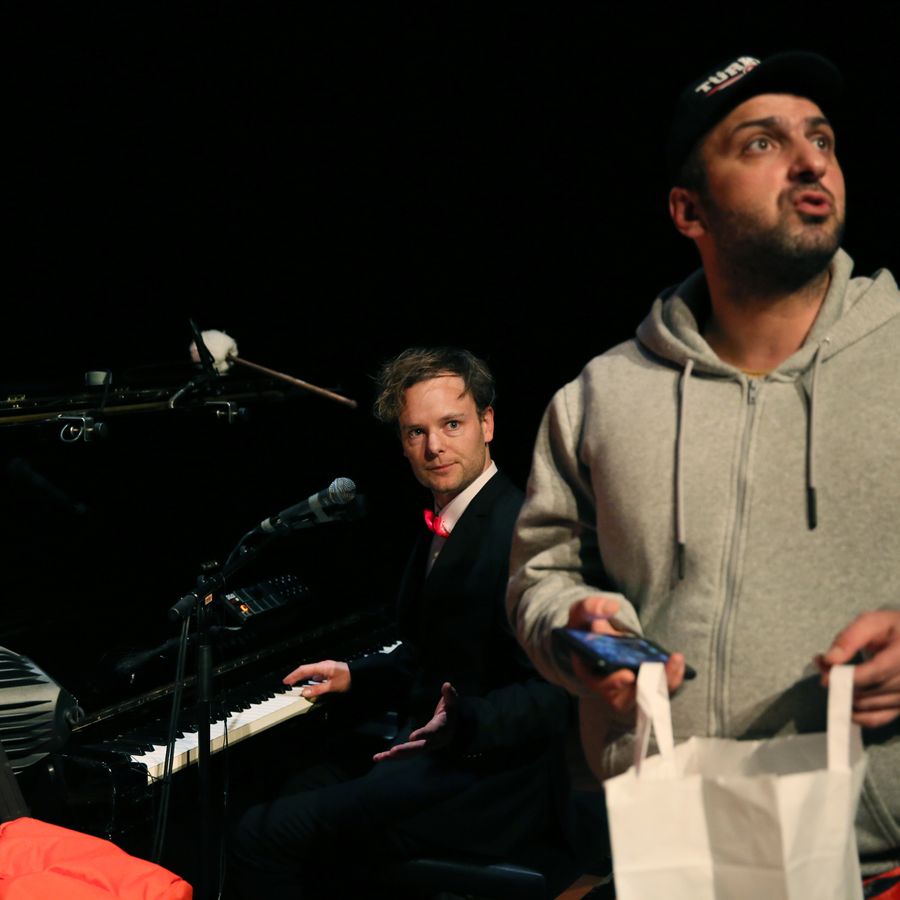 concept, tekst en spel Sadettin Kirmiziyüz muziek en spel Kaspar Schellingerhout eindregie Jeroen De Man dramaturgie Liet Lenshoek decor Sacha Zwiers kostuums Lotte Goos licht Gé Wegman coproductie SADETTIN K & Het Nationale Theater mede mogelijk gemaakt door Fonds Podiumkunsten, Gemeente Den Haag
