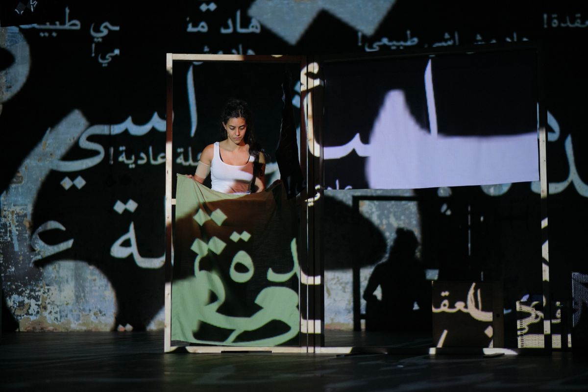 Marah Haj Hussein reveals the layered forms of pressure, violence and domination a language can exert on another, causing it to continuously transform and alter. The theatre becomes thereby a stage for confusing and intersecting antagonistic realities to be put in friction. With humour, anger, love and absurdity, the performance foremost embraces the limits of translatability of a language, to keep thinking about processes of resistance.