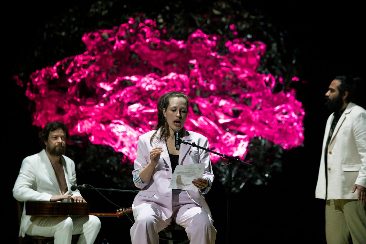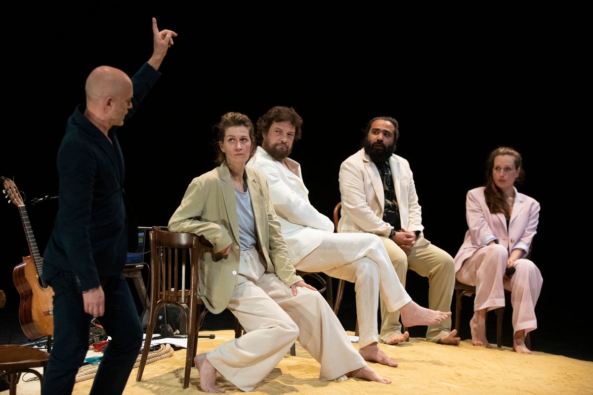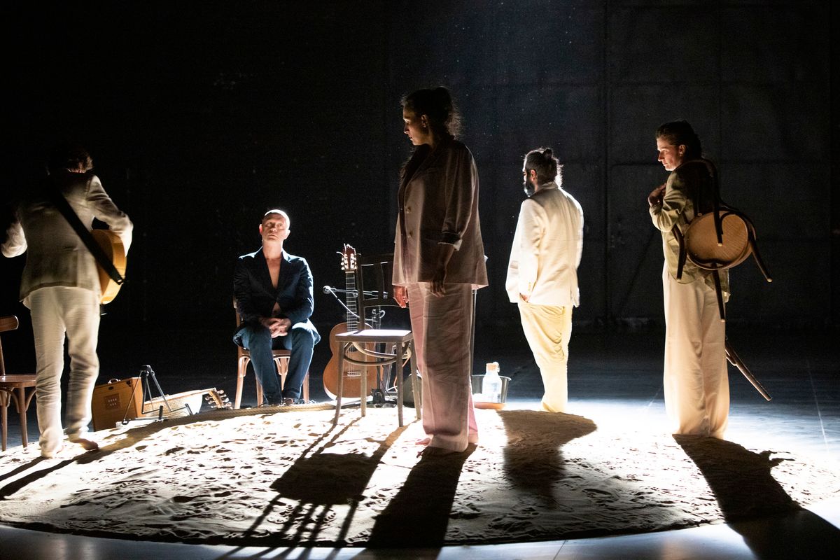 Drie acteurs, een zangeres en een muzikant zijn collectief op zoek naar de liefde. Ze buigen zich over dit grote gevoel dat zich op zoveel kan richten. Het kind dat je baart, de mens met wie je leeft, de aarde waarop je woont. Maar ook op het land waar je geboren bent, de stoel waarop je vader altijd zat, de geur van rozemarijn, het wapen waar je je vijand mee doodt. Ze formuleren met woorden en stemmen, geluiden en beelden op een landschap van zand.