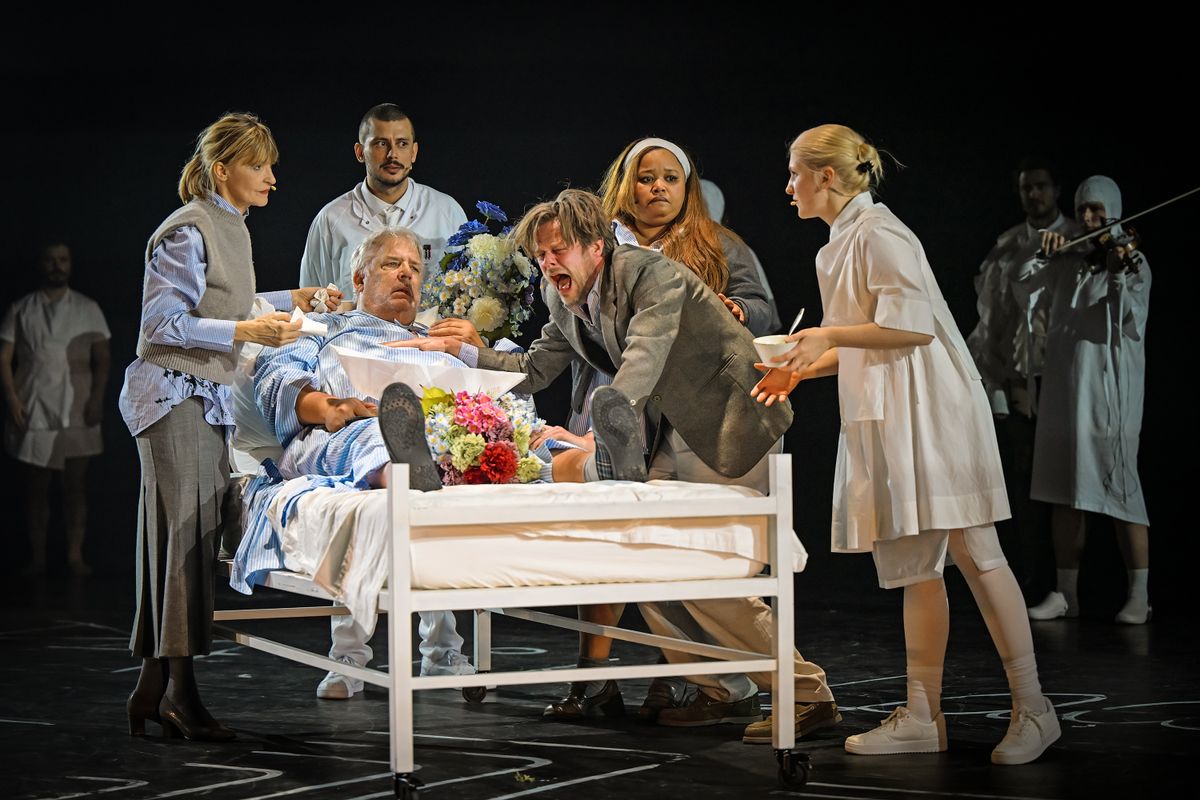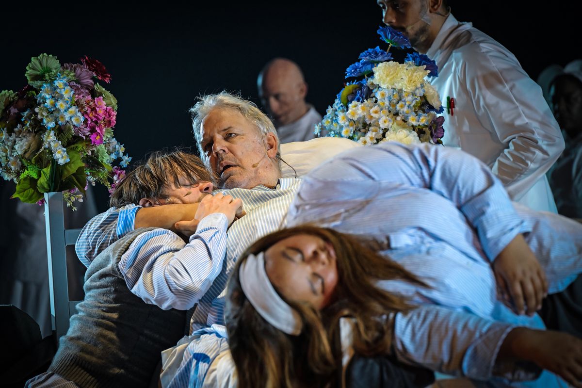As these notes pulse through the performance like a heartbeat, occasionally, Mr.'s family pays him a visit. A modern family, fragmented like most families today, consisting of isolated individuals yearning for connection but keeping each other at arm's length.
