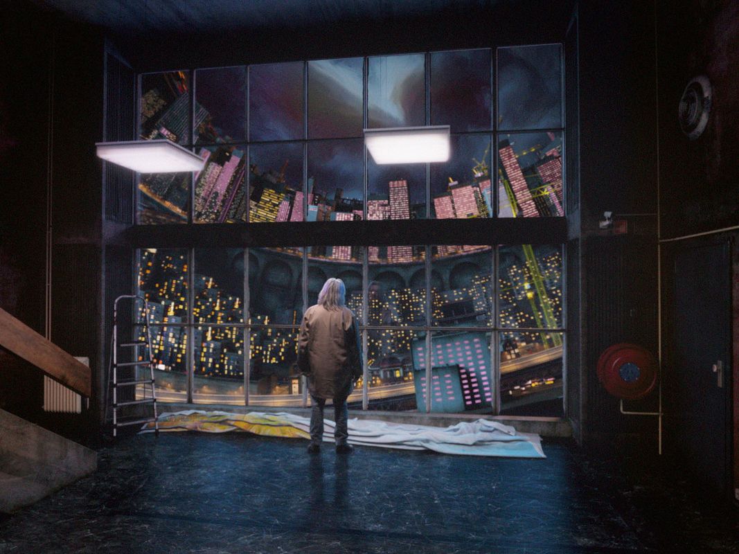 An impossible city is built up out of enormous rotating rings, steering the lives of its lonely inhabitants. NEW BABYLON follows three characters living secluded lives and is a visual trip through an oppressive night in which contemporary, individualistic life is reflected in a circular metropole.