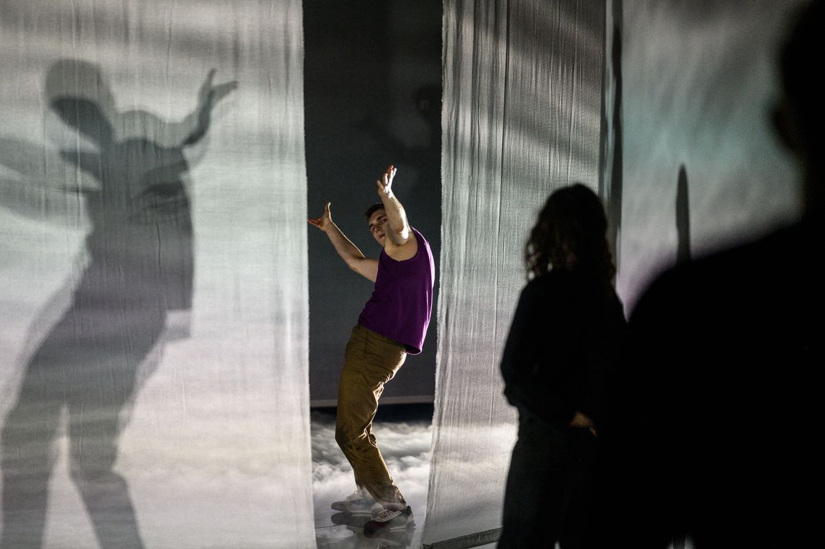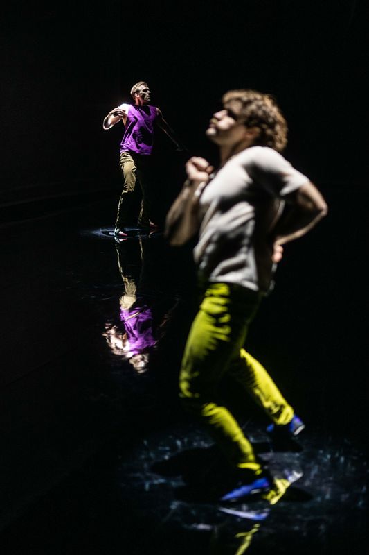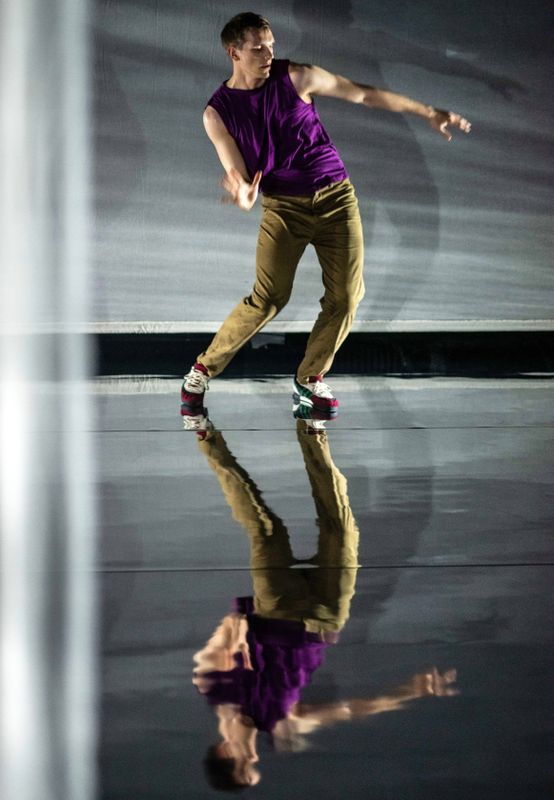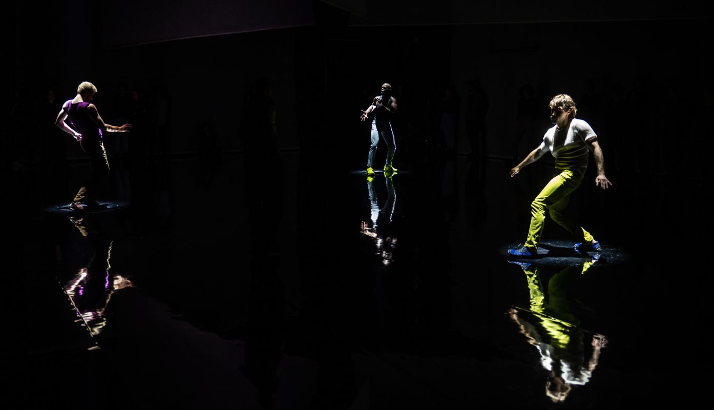 O S C A R is an installation and performance all at once. In this intimate new work, Arno Schuitemaker searches for a renewed sense of identity after life brought you to the epicenter of a break. Bringing three performers and the audience together on stage, a mirroring floor and countless shadows create a liminal, threefold world with full transparency. Daring, tender, and propulsive, and a testament to the determination in rebuilding, O S C A R unites embodied journeys of empowerment, free of rules. No human is limited.
