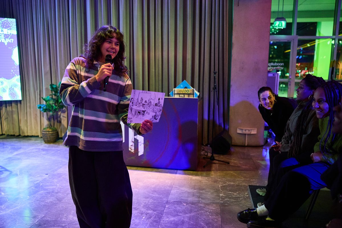 De Rotterdamse kunstenaar Pris Roos staat bekend om haar veelzijdige werk in schilderkunst, spoken word, video en installaties. Naast het campagnebeeld maakt zij tijdens de avond een nieuw kunstwerk, geïnspireerd op de gesprekken aan tafel.