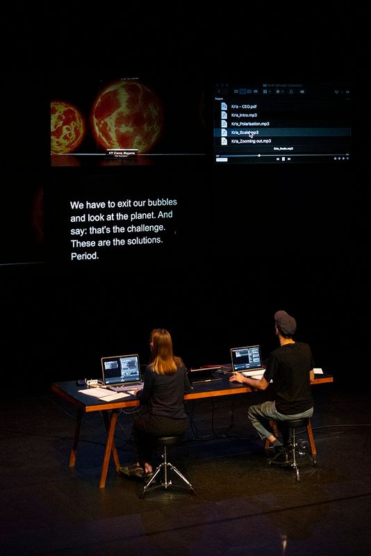 In Out of the Blue Flemish documentary theater makers Silke Huysmans and Hannes Dereere examine this emerging industry and the public debate surrounding it. This debate is dominated by three camps: industry, science, and activism, all of which are addressed. The question seems to be: who tells the best story? And who thereby determines the future of life in the deep sea?