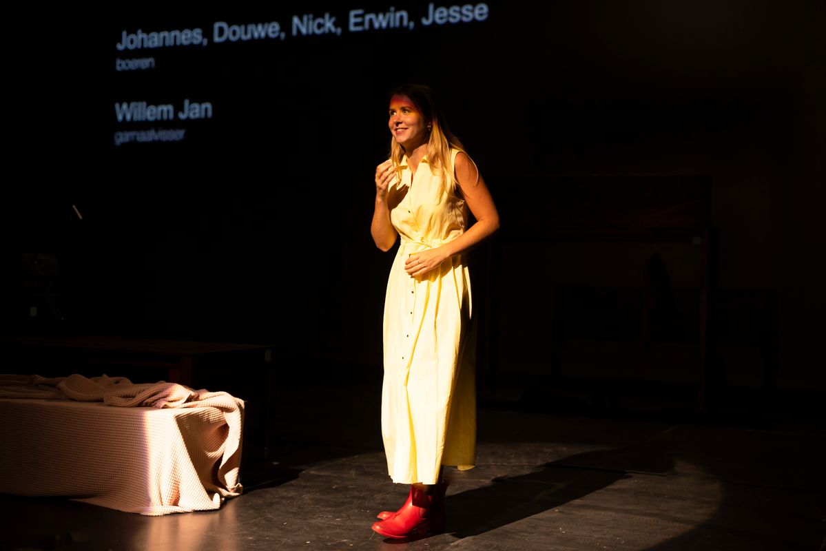 spel, concept en tekst Sophie Anna Veelenturf regie Doris de Vries research, productie en coregie Jarne Van Loon spelcoaching Kristien De Proost, Karolien De Bleser outside eye Marah Haj Hussein scenografie Chloé Wasselin Dandre decorbouw Wiebe Moerman muziekcompositie en eindmixage Seppe Vande Veire technische leiding Marjolein Demey, Nick De Keyser techniek Rex Tee, Jakke Theyssens zakelijke leiding Tine Verhaert, Patrick Sterckx office management Maya Van der Brempt verkoop en projectcoördinatie David Bauwens communicatie Sam Loncke coproductie Het Laatste Bedrijf, Cambridge Junction residentiepartners CAMPO, NTGent, kunstencentrum nona, c o r s o, Het Oude Badhuis, Theater aan Zee, de Brakke Grond met dank aan alle geïnterviewden, Rashif El Kaoui, Josie Dale-Jones met de steun van de Vlaamse Overheid, Tax Shelter maatregel van de Belgische federale overheid, Gallop Tax Shelter, deAuteurs, the Stobbs New Ideas Fund