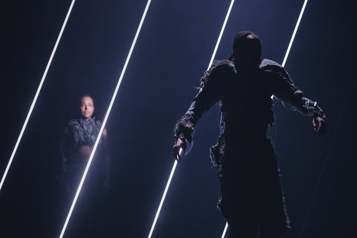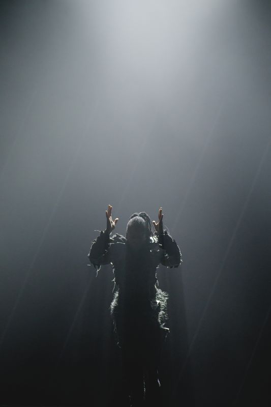 With a celestial blend of percussion and guttural sounds, music bleeds effortlessly into an undulating style of movement performed by Far From The Norm. Feathered costumes give glimpses of kindred spirits transcending above their former identities, whilst piercing light interrupts the stage as a pitiless testing ground, reminding us of a higher power that carves our reality.