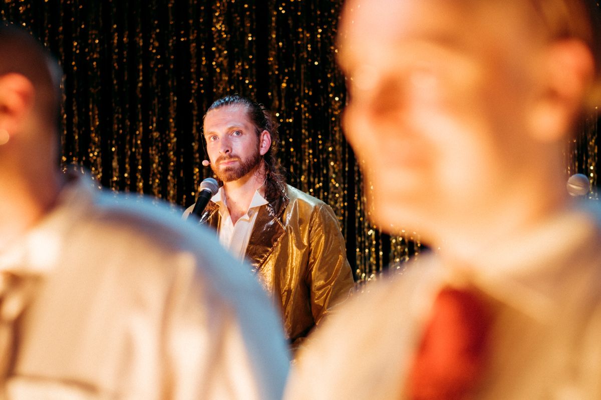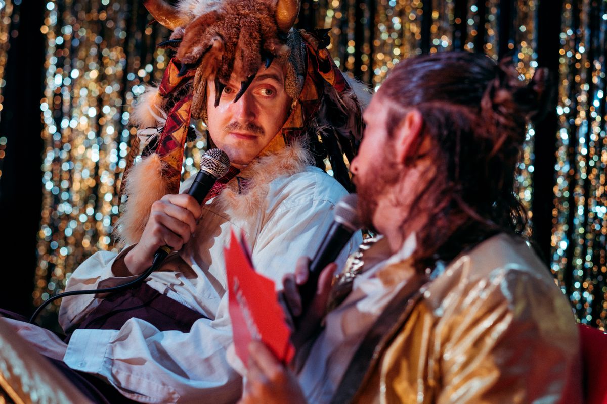 Performance collective URLAND, together with the Dutch-Icelandic theatre maker Vincent van der Valk, makes an inexplicable but appetizing mini-revue about the End-Time story from Norse mythology. The 'Ragnarok' is a flaming, cosmological, archetypal, bombastic, violent and as dark a story as it is hopeful. For all of those addicted to painkillers, for everyone looking for a story in these post-narrative and post-digital times, for all the over- and understimulated art consumers. The hour is NOW. Thus URLAND blows the Gjallar horn: it's showtime!