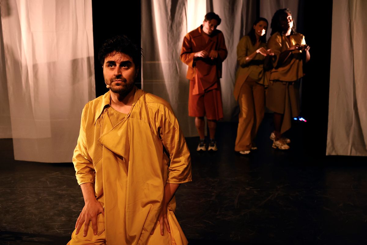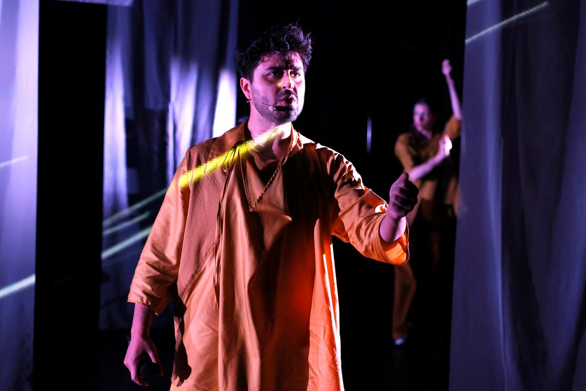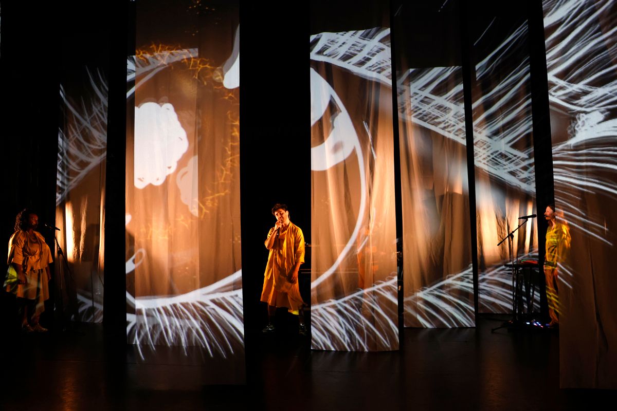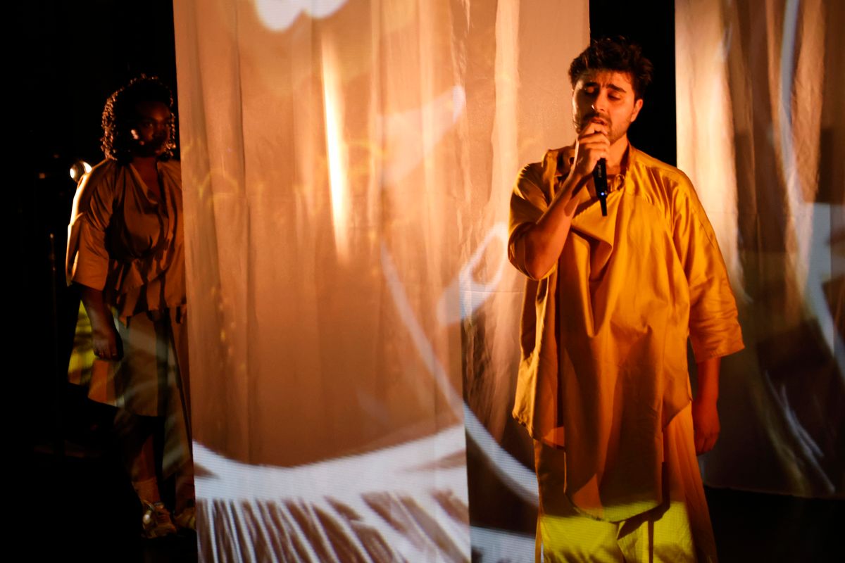 We Sleep Among Demons is a musical performance about daring to look your greatest fears straight in the eye. In a ritualistic concert for devil-exorcism, Club Gewalt member Amir Vahidi kills his own discomfort in order to take center stage. Like in a fever dream, he battles the inner demons that shape his view of reality. Inspired by Persian mythology and accompanied by dreamy, narrative music, he frees himself from the compulsions of the past. Letting go is also a form of harvesting.