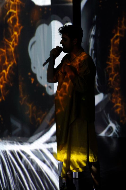 We Sleep Among Demons is a musical performance about daring to face your deepest fears. In a ritualistic concert for exorcism, Club Gewalt member Amir Vahidi kills his own unease in order to take center stage. Like in a fever dream, he confronts the inner demons that shape his gaze on reality. The demonic voice of a mother telling him he mustn’t be angry? Banished. The voice of the racist bouncer who tells him he doesn’t belong in the club? Sent away. His white artistic collective that doesn’t take his voice seriously? Smoked out. But what do you do with your own voice, when it drags you down at every opportunity and would prefer to cut you off at the ankles?