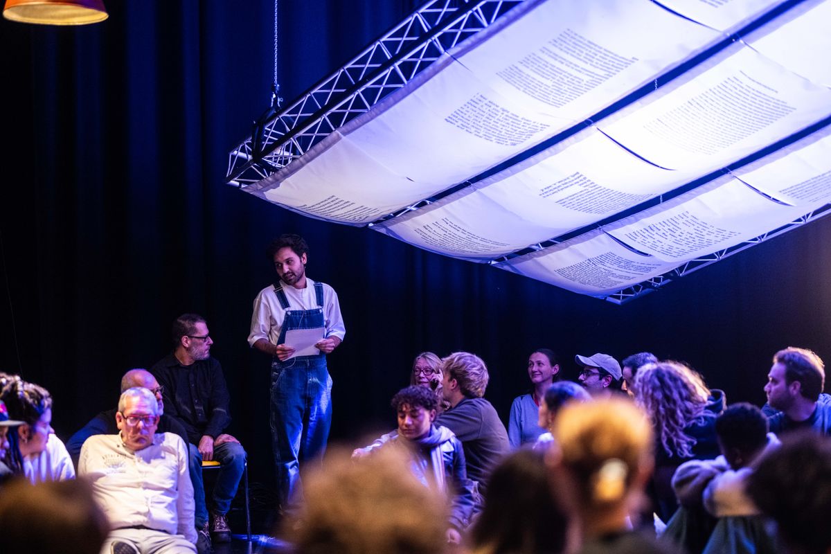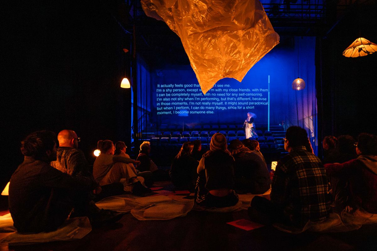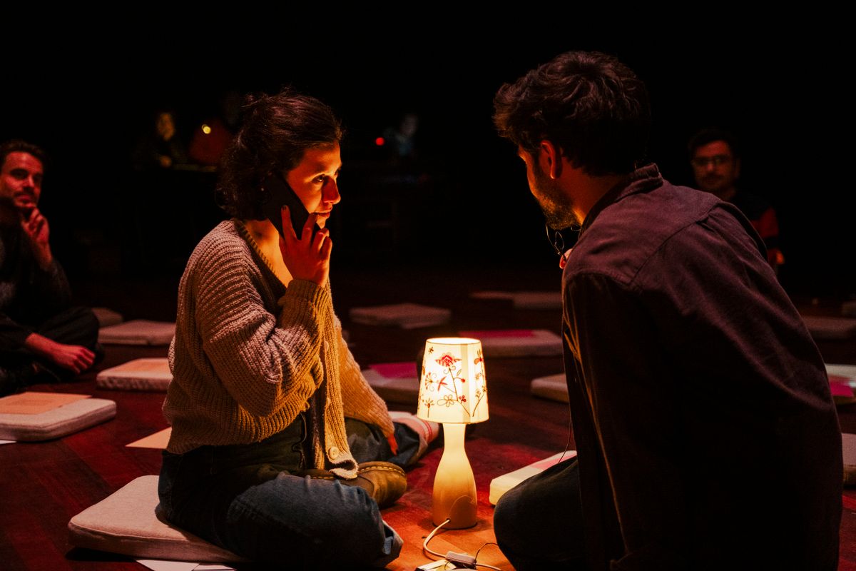 Whispered Dreams began as a series of letters and texts exchanged between Mona (a writer and actress based in Tehran) and Fariborz. They are close friends and members of the same collective that has been active in Tehran since 2011. Starting from these texts, they are revisiting their connection, friendship, and artistic collaboration, considering lived experiences—Fariborz' in Amsterdam and hers in Tehran. Due to the distance, their collaboration takes place remotely, which presents certain challenges in their creative process and performative setups. This distance is integral to the concept of the work, posing challenges, particularly in relation to audience role.