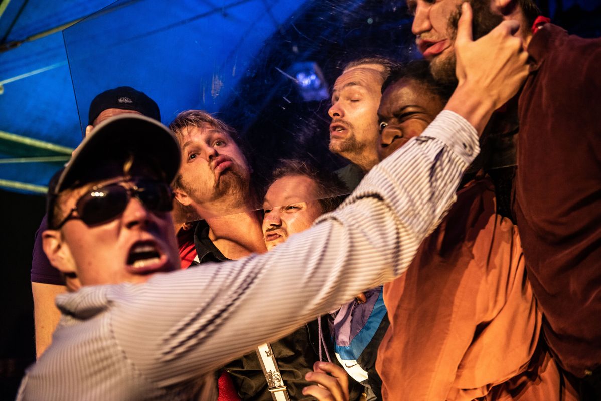 "Zeven mannen met ontbloot bovenlijf en een vrouw halen onwaarschijnlijke caperiolen uit in een overvolle bus. Het is grof, hard en stoer, het gaat over verveling, irritatie en over de pornoficatie van de samenleving. Collectief Het Paradijs gaat komend seizoen avondvullend het theater in. Ik kan niet wachten."
