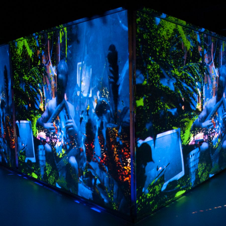 Take a seat in Botanical Wasteland’s lurid-green testbed. A futuristic habitat full of plastic waste and techno-garbage, in which man no longer holds centre place. In which everything is intertwined and the boundaries separating nature, technology, body and identity have been lifted.