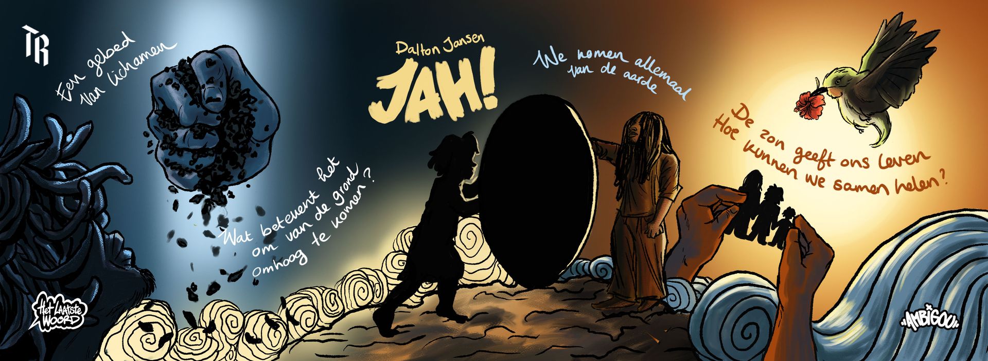 Tijdens deze nagesprekken luistert illustrator Amber Rahantoknam mee en maakt schetsen die ze in haar studio verwerkt tot een illustratie. Ze combineert beelden uit de voorstelling met fragmenten uit Het Laatste Woord.  Dit is een bundeling van de illustraties die Amber in opdracht van Theater Rotterdam heeft gemaakt.