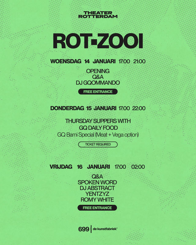 rot•zooi wordt mede mogelijk gemaakt door een bijdrage van het Fonds voor Cultuurparticipatie en de Gemeente Rotterdam, naar aanleiding van een aanvraag die tot stand kwam in samenwerking met tienduizend Rotterdamse jongeren.